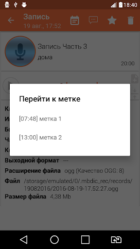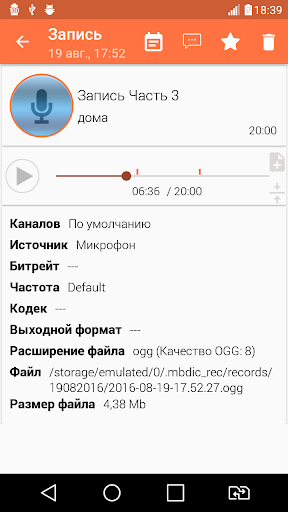 4. Просмотр конкретной записи со всеми настройками для того, чтобы можно было сравнивать качество звуковых файлов, что в последствии поможет настроить оптимальные параметры для вашего мобильного аппарата