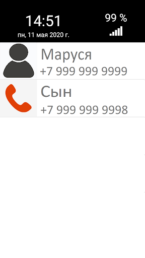 Простое приложение телефона для пожилых людей. Позволяет с лёгкостью совершать и принимать звонки.