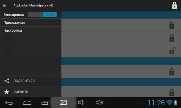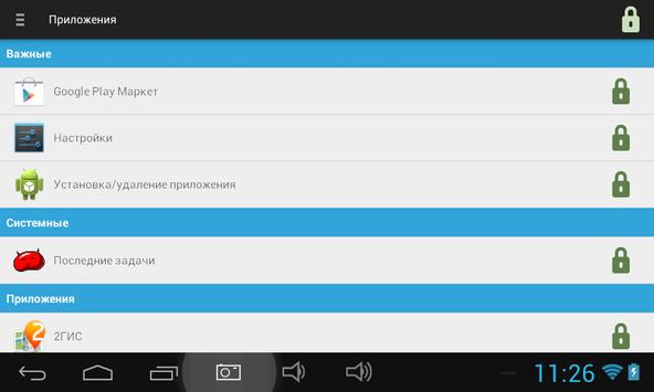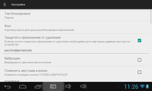 • Блокировка запуска любого приложения паролем или графическим ключом