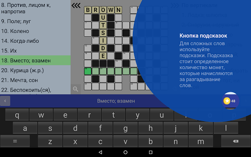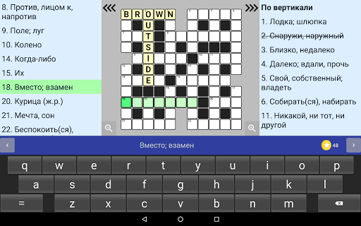 Кроссворды: Английские слова - это классическая игра головоломка кроссворд на английском языке, но вместо разгадывания слова по вопросам/описанию - в клетки необходимо ввести перевод слова с русского языка.