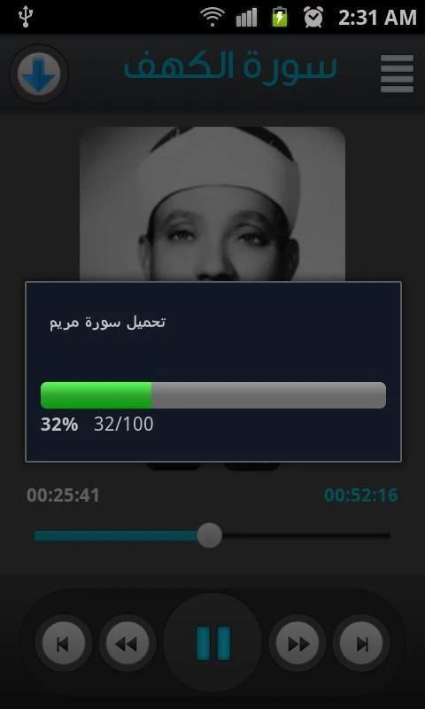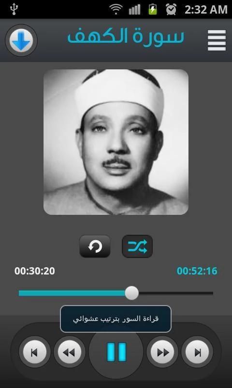 تحميل السور على الجهاز. للاستماع للتلاوة دون الاتصال بالانترنت