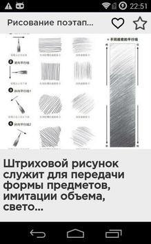 В нашем приложении имеются большое количество уроков разной тематики для развития художественных навыков. Каждый урок посвящен одному рисунку, он имеет подробные пошаговые инструкции, как рисовать этот рисунок с подробным описанием.