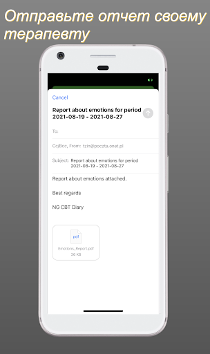 Приложение генерирует чистый и аккуратный отчет в формате pdf. Этим отчетом можно поделиться со своим психологом.