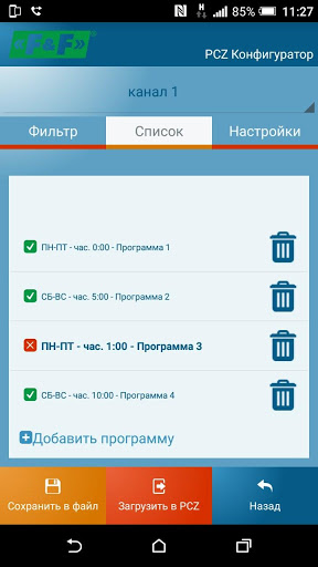• быстрое считывание и загрузка конфигурации настроек в реле времени PCZ;