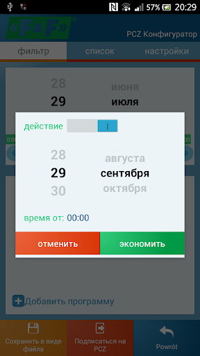 PCZ Конфигуратор F&F предназначен для дистанционной (по средствам NFC) конфигурации реле времени PCZ-521, PCZ-522 производства F&F.