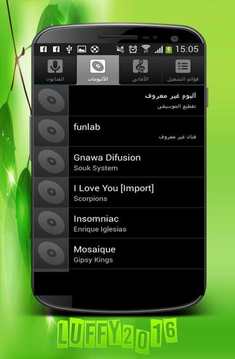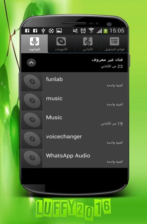 ✔ يحتوي على تصنيفات عديدة "صفحات" يتم التحكم بعرضها داخل التطبيق مثل (الفنانين، الألبومات، الأغاني، قوائم التشغيل، الأغاني التي شغلت مؤخرا والأنواع)