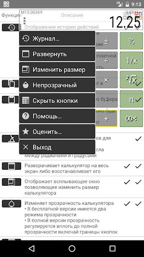 • Кнопка закрытия "сворачивает" калькулятор в область уведомлений, что дает возможность запустить калькулятор из другого приложения. Чтобы закрыть калькулятор без этого уведомления, удерживайте кнопку или используйте пункт выход в меню
