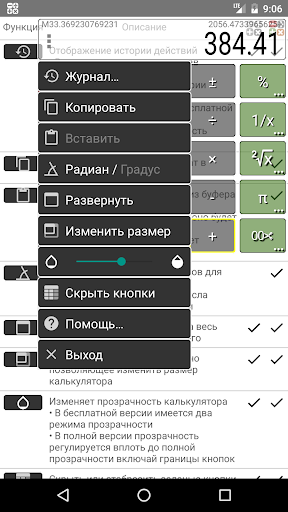 • Кнопка закрытия "сворачивает" калькулятор в область уведомлений, что дает возможность запустить калькулятор из другого приложения. Чтобы закрыть калькулятор без этого уведомления, удерживайте кнопку или используйте пункт выход в меню