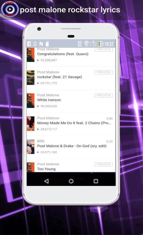 Бесплатно и обеспеченно скачать приложения для андроид в 9Apps. 20,000+ пользователи скачали последнюю версию post malone rockstar lyrics в 9Apps бесплатно каждую неделю! Если вы не любите старые версии, можно обновить его прямо сейчас. Это горячее приложение было выпущено в 2017-12-21. Чтобы получить больше информаций, вы можете приходить в наш официальный вебсайт - 9Apps.