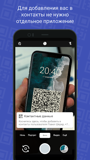 Чтобы добавить вас в контакты, не требуется отдельное приложение. Чаще всего, камера вашего собеседника уже умеет распознавать QR-коды.