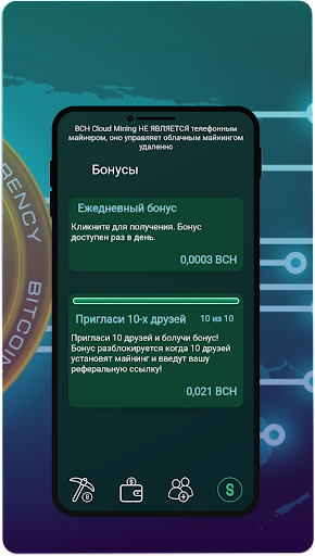 Приложение BCH Cloud Miner НЕ ЯВЛЯЕТСЯ майнером для телефона, оно управляет облачным майнингом удаленно.