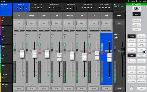 На смартфонах приложение для управления TouchMix функционирует как управление смесью Personal Stage Monitor. Также удаленно используйте функции записи и воспроизведения миксера, а также программируемые кнопки пользователя. Оператор миксера может разрешить или ограничить доступ к выбранным функциям на основе на основе на каждого устройства.