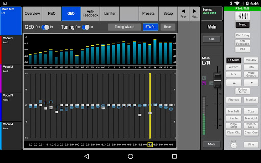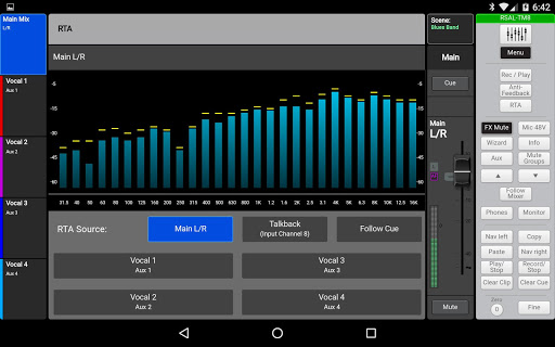 При запуске на планшетном устройстве приложение тесно следует оперативной парадигме смесителей. Приложение и Mixer GUI работают независимо, так что для планшета можно действовать как дополнительный пользовательский интерфейс, который может отображать и управлять набором функций, полностью отличающихся от тех, которые управляются экраном и аппаратным оборудованием. Альтернативный режим работы - следующий миксер - также доступен. При использовании следующего смесителя планшет следует за выбором фейдера на смеситель. Прикоснитесь к фейдеру на микшере и планшет отобразит этот обзор канала, EQ, компрессор, отправки или экран Gate. Нажмите на параметр на планшете и поворотное управление миксером отрегулируют его - или просто перетащите на экран планшета. При использовании без фактической TouchMix приложение действует как демонстрация интернет-интерфейса и функциональности Mixer и функциональности, но не контролирует звук.