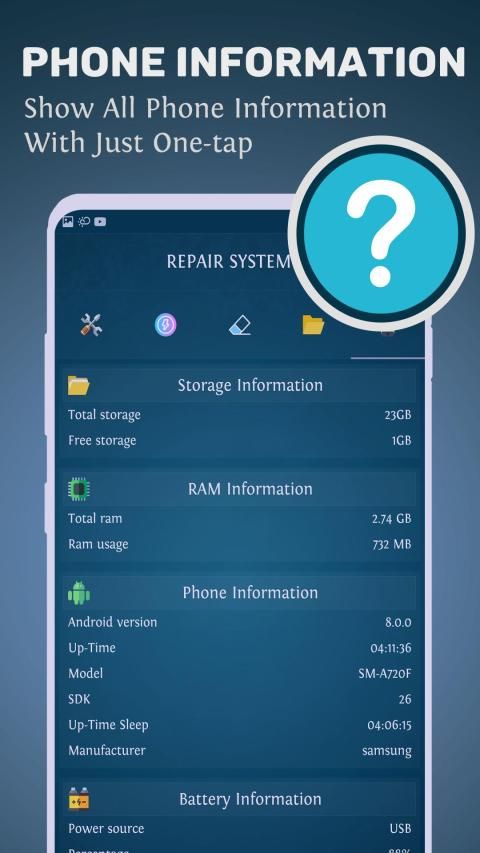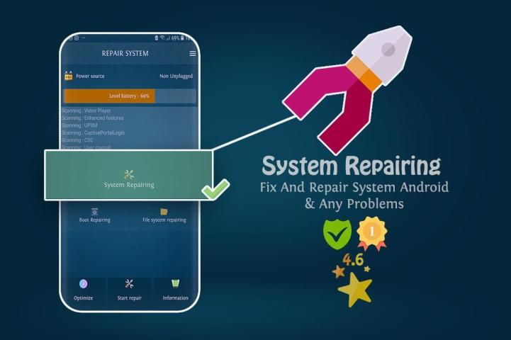 Repair System For Android is smart doctor for your phone, this app will help you by checking your entire system and fix any problems, it so you can have a stable system and fast, also check your memory RAM, so this app is an intelligent scanner, scan for bugs and damage files, it will boost your RAM and cleaner also remove any empty folder,