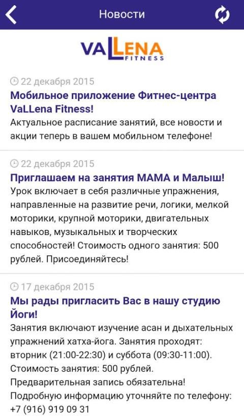 Приложение позволит Вам быть в курсе новостей центра «Vallena Fitness», всегда иметь при себе актуальное расписание групповых занятий. Вы получите возможность написать отзыв о центре, а так же просматривать фотоотчёты с мероприятий!