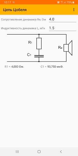 Также в программе имеется расчет вспомогательных цепей кроссовера: цепи Цобеля для компенсации индуктивности катушки динамика и аттенюатора для снижения подводимого к динамику сигнала.