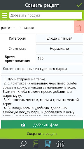 3) У вас будет возможность записывать собственные рецепты и использовать приложение как кулинарную книгу!