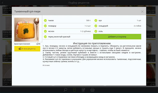 Приложение имеет рецептурную базу для более чем 850 блюд и будет регулярно дополняться новыми рецептами.