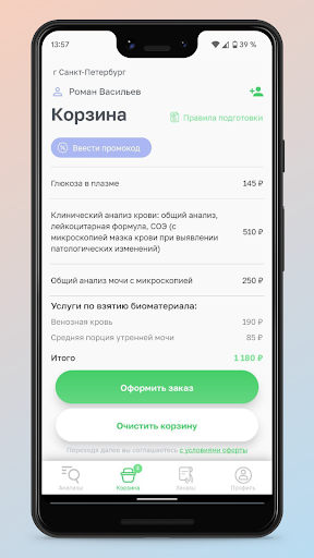 - закажите и оплатите нужные анализы в приложении, вы получите инструкцию как правильно подготовиться к сдаче анализов