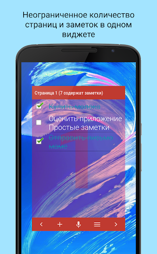 Записывайте идеи и планы, делитесь ими с друзьями, коллегами и членами семьи. Вы можете использовать приложение как блокнот, записную книжку, ежедневник, органайзер, список для покупок, to do list. С помощью виджета можно отметить совершенные дела или создать напоминания. Вы можете создавать заметки одним-единственным кликом на домашнем экране. А если у вас заняты руки, используйте голосовой ввод, и заметка автоматически преобразуется в текст.