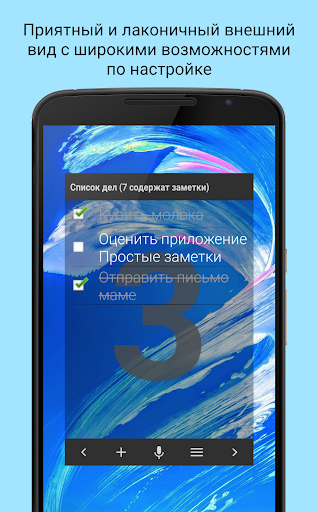 Виджет на рабочий стол позволяет постоянно иметь под рукой список дел и сразу показывает запланированные задачи. Это очень простой и чрезвычайно легкий в использовании инструмент с мощными функциями. «Простые заметки» также отлично подойдут для составления плана на каждый день, неделю, год.