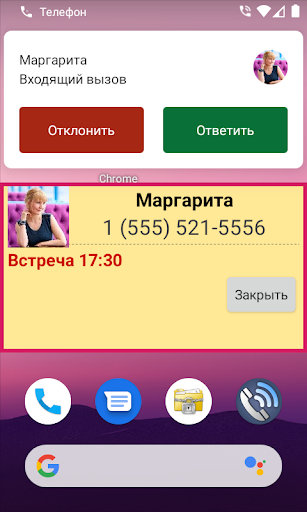 1.1. Определение контакта по входящему номеру и вывод заметки для этого контакта.