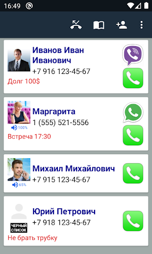 1.2. Управление громкостью телефона для этого контакта, если звук в телефоне выключен, то программа включит звук в телефоне и этот абонент сможет вам всегда позвонить.