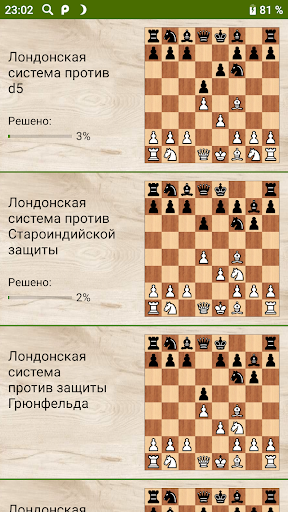 Головоломки разделены на 4 группы в зависимости от того, каким образом чёрные пытаются бороться с Лондонской системой. Во всех партиях данного приложения победу одерживали шахматисты, игравшие белыми фигурами.