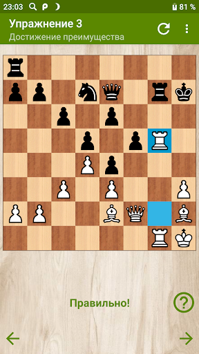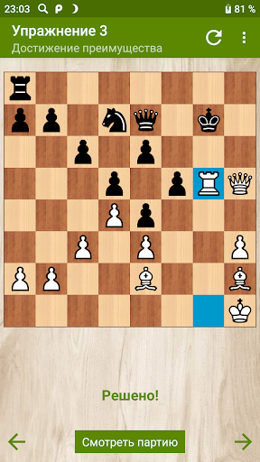 Бесплатная версия содержит 30 интересных головоломок на комбинации с победой, достижение преимущества и мат в несколько ходов.