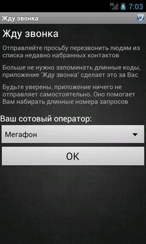 У каждого из нас заканчивались деньги на счету сотового телефона. Приложение "Жду звонка" поможет Вам оставаться на связи даже при финансовой блокировке. Все что нужно чтобы начать использование — выбрать Вашего сотового оператора*!