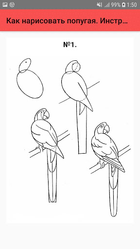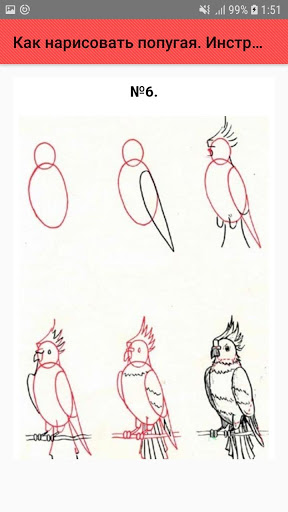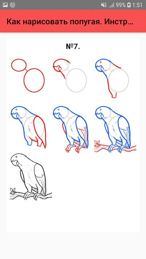 Чтобы нарисовать попугая пошагово потребуется карандаши, ластик, цветные карандаши, фломастеры или краски.