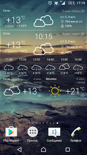 – Погода обновляется автоматически с интервалом от 10 минут до 1 часа.