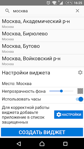 – Устанавливайте несколько виджетов с погодой для разных местоположений, комбинируйте размеры.