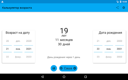 После того как Вы вычислили возраст вашего друга или родственника нажмите на кнопку "Сохранить", чтобы всегда иметь доступ к этой информации.