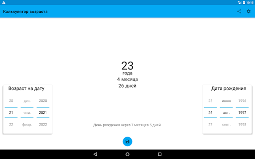* При помощи этого калькулятора возраста легко узнать сколько дней осталось до Дня Рождения. Если вы с нетерпением ждете когда вам исполнится 18 лет или 21 год то это приложение подскажет сколько осталось ждать.