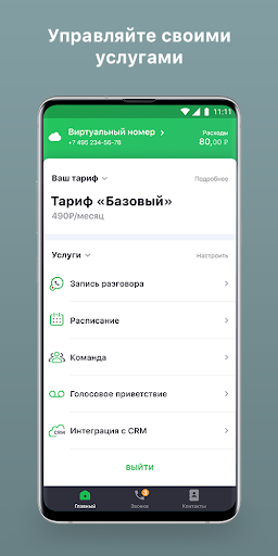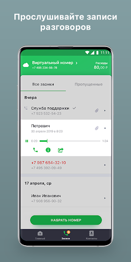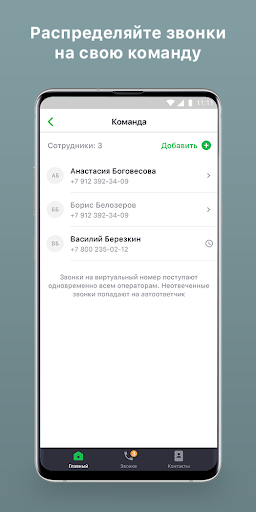 Подключив виртуальную АТС, вы можете принимать звонки на виртуальный номер без смены SIM-карты. Вы можете подключить к виртуальному номеру до пяти сотрудников вашей команды, и прослушивать записи их вызовов