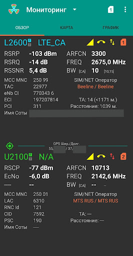 - Онлайн мониторинг сигнала и сервисов сотовой сети NR / LTE / WCDMA / GSM / CDMA