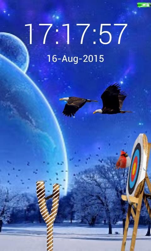 Screen lock birds is a great application for all bird lovers with their favourite graphics. birds screen lock consists of beautiful bird and your favourite backgrounds, target board and bird thrower and with nice touch.