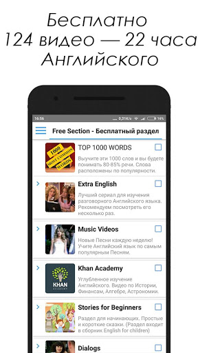 2) Бесплатный раздел – Free Section. Здесь есть сериал extra english, видео khan academy, песни, диалоги. Начать обучение можно здесь. Слушайте аудио, песни и учитесь понимать на слух английскую речь. Khan academy подойдет ля тех, кто хорошо знает Английский язык.