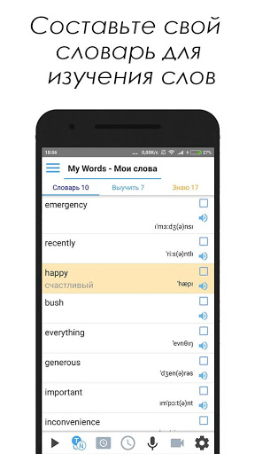 1) Мой словарь. Это бесплатный раздел (Free), где вы можете увеличить словарный запас. Обучение – это легко. Зная слова вы можете слушать и понимать собеседника и вести диалог. Обучение необходимо ежедневно, чтобы быстро выучить английский язык.