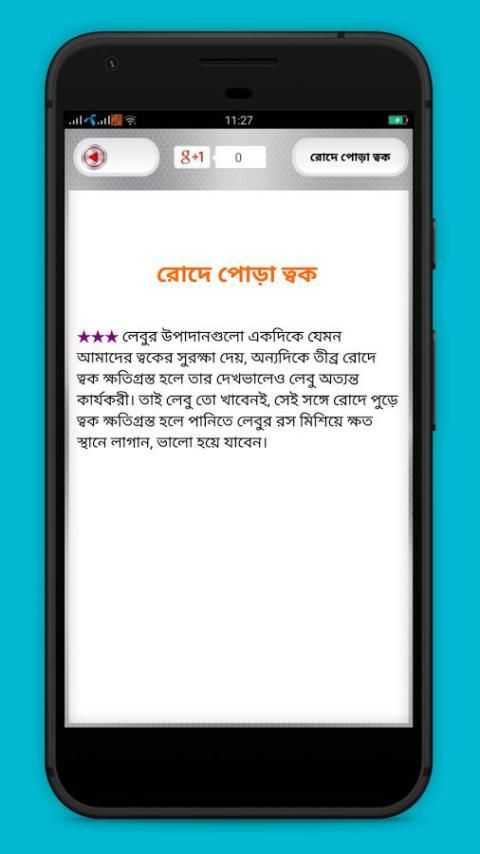 মেয়েদের কাছে লেবু খাওয়ার থেকে রুপ চর্চার জন্য বেশি প্রিয়. মেয়েদের মুখের ব্রণ চিকিৎসা উপকরন বলতে লেবুর নাম সাবার আগে আসে. বিভিন্ন ফিসিয়াল টিপস থেকে পাওয়া তথ্যঅনুযায়ী মুখের ব্রণ, মেছতা বা কোন দাগ দূর করতে লেবু ব্যাবহার করা হয়. কারণ লেবুতে রয়েছে প্রচুর পরিমানে অ্যান্টিসেপ্টিক বা জীবাণুনাশক উপাদান. শরীরে ভিটামিন সি এর যোগান দেওয়া এবং ত্বকের যত্ন ছাড়াও শরবত রেসিপি তৈরীর কাজে ব্যাপক জনপ্রিয়. লেবু দিয়ে শুধু মাত্র পুরান ঢাকাতেই 50 রকমেরই বেশি শরবত তৈর করা হয়. ভিটামিন সি কিন্তু স্কার্ভী রোগের সবথেকে বড় প্রতিষেধক. অনেক বিশেষজ্ঞের মতেই স্কার্ভী রোগের প্রধান কারণই ভিটামিন সি এর অভাব. তো দেখা যাচ্ছে ভিটামিন সি এর গুরুত্ব আসলেই অপরিসীম. আর ভিটামিন সি এর সবথেকে সহজপ্রাপ্য এবং ক্রয়যোগ্য উৎস হল লেবু. আর এই লেবুকে কাজে লাগানো সম্ভব নানান মজার উপায়ে. লেবুর শরবত থেকে শুরু করে লেবু দিয়ে ফেসিয়াল করার উপায় পর্যন্ত সবকিছু আপনাকে জানাতে আমাদের এই এ্যাপ. তাহলে আর দেরি কেন? - এ্যাপটি এখনই ডাউনলোড করে জেনে নিন সুস্থ ও সুন্দর থাকার উপায়গুলো.