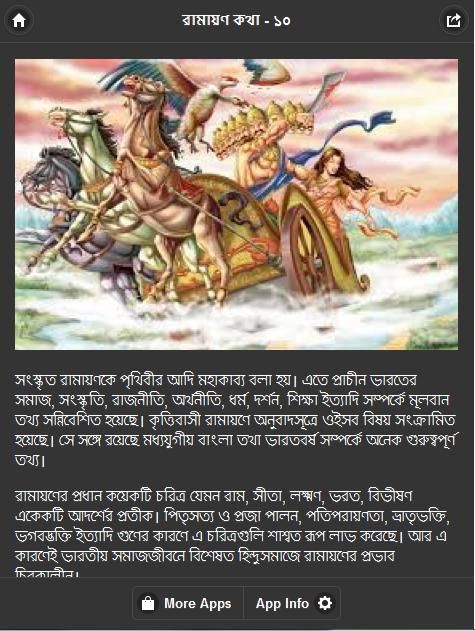 Бенгальский перевод Рамаяны с санскрита Рамаяны, но талант автора, жизненный опыт об окружающем мире и обществе и т.д., стиль нового творения стал. Рамаяна sbamahimaya Krttivas особенно ярко. Хотя есть много различий с главной целью бенгальских индуистов имеют широкое влияние.