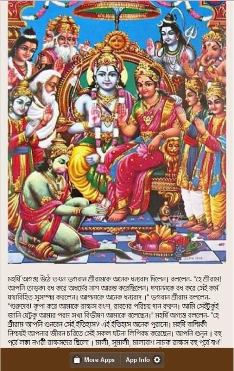 Рамаяна, написанная Вальмики Махарши, основанный на истории царей древней индийской санскритской эпической suryabansiya. Предполагаемая дата БК третьего века. Рамачандрану История жизни сына царя вопросов ключевых Ayodhya Дашаратхи. Saptakanda или зрителей, разделенный на семь частей.