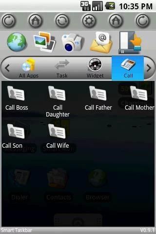 Smart Taskbar не просто запустите установленного приложения, но также строит любой комбинации действий, таких как прямой вызов телефонных кому-то или перейдите на закладку для супер быстро, не выходя из текущего окна.