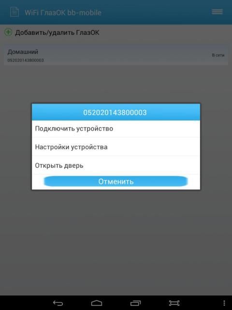 Программа для соединения мобильного телефона и видеоглазка bb-mobile WiFi ГлазОК. Позволяет общаться с посетителем удалённо, не прибегая в передаче данных по сети GSM.