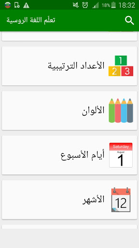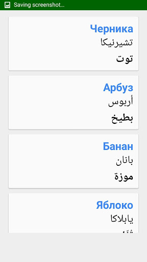 каждое слово и каждое предложение, написанное на русском языке, а также написано на арабском языке, чтобы пользователь помогал узнать, как выделить слово или предложение. Несколько игр и тестов в приложении помогают вам в упражнении для сохранения слов и предложений. Со временем многие слова и предложения будут добавлены и, возможно, другие развлекательные игры.