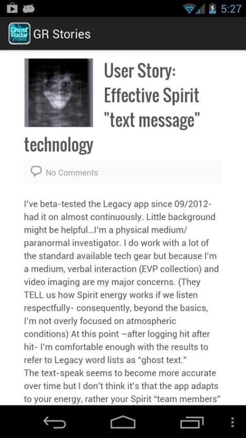 Теперь есть быстрый доступ к опыту Духа пользователей Radar®. Просто открыв приложение, которое вы будете представлены с последними Дух Radar® историй. Вы также можете отправить свой собственный опыт, чтобы поделиться с другими.