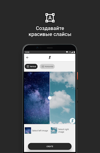 Slices App - это новый инструмент для создания особенного вида коллажей, который мы называем слайс. Слайс представляет собой две разделенные линией фотографии, тем самым позволяет вам совместить преимущества обеих фотографии в одном коллаже. Для создания слайс вам не понадобятся никакие дополнительные инструменты, только ваше воображение!