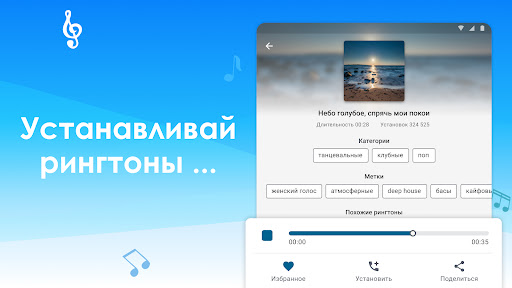 Скачав бесплатно Рингтоны и мелодии на звонок телефона - Solovey один раз, вы получаете многофункциональное Андроид приложение, позволяющее устанавливать качественные нарезки музыки 2022 на звонок без потери дополнительной памяти телефона. Возможна установка красивых мелодий на конкретных людей из списка контактов, на различные уведомления, СМС сообщения, будильник или просто на рингтон - один для всех, если вдруг очень нравится новая песня, которую хочется прослушивать снова и снова.