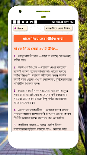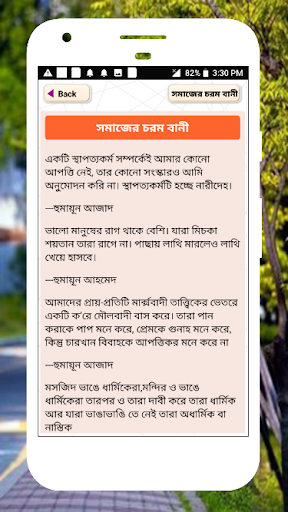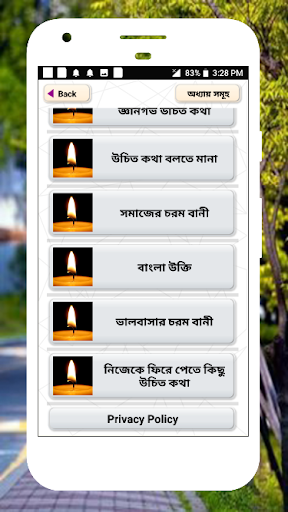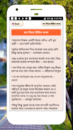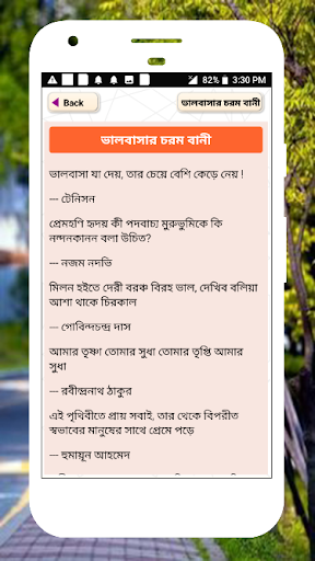 Он представляет некоторые интеллектуальные цитаты в Бенгалии за жизнь. Интеллектуальные и умные цитаты для деревенской жизни. Котировки мудрости или слова мудрости для социальной деятельности. Это приложение обеспечивает несколько отличных блестящих цитат в бенгальском языке, что нужно в жизни и социальной деятельности.